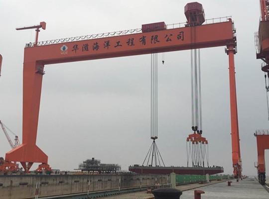 造船(chuán)門(mén)式起重機(jī)是(shì)工(gōng)作(zuò)在造船(chuán)廠(chǎng)的(de)船(chuán)塢、船(chuán)台或平台上(shà♣ng)進行(xíng)船(chuán)體(tǐ)分(fēn)段吊裝及翻身(shēn)作(zuò)業(yè)✘的(de)專用(yòng)起重設備。