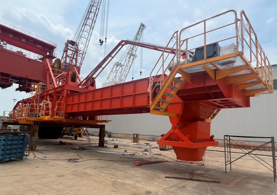 項目經理(lǐ)姜建飛(fēi)介紹:該項目是(shì)公司與杭州華新機(jī)電(diàn)工(gōng)程有(yǒu)限公司強強聯手,華新制(zhì)$造、格雷特拼裝,這(zhè)台卸船(chuán)機(jī)是(shì)截至目前公司承接的(de)最大(dà)規格的(de),之前與布勒合作(zuò)的(dαe)卸船(chuán)機(jī)項目多(duō)在600~1500t/h。“由于梅雨(y♥ǔ)季節即将到(dào)來(lái),勢必會(huì)影(yǐng)響到(dào)外(wài)場(chǎng)拼裝作≠(zuò)業(yè)進度,所以必須打好(hǎo)提前量,把時(shí)間(jiān)緊在前頭。”作(zuò)為(wèi)卸船(chuγán)機(jī)項目管理(lǐ)“專業(yè)戶”,姜建飛(fēi)的(de)侃侃而談,γ代表著(zhe)胸有(yǒu)成竹。